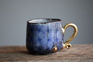Aged Blue Grey glossy mug 5 oz with 22 k gold handle and accents